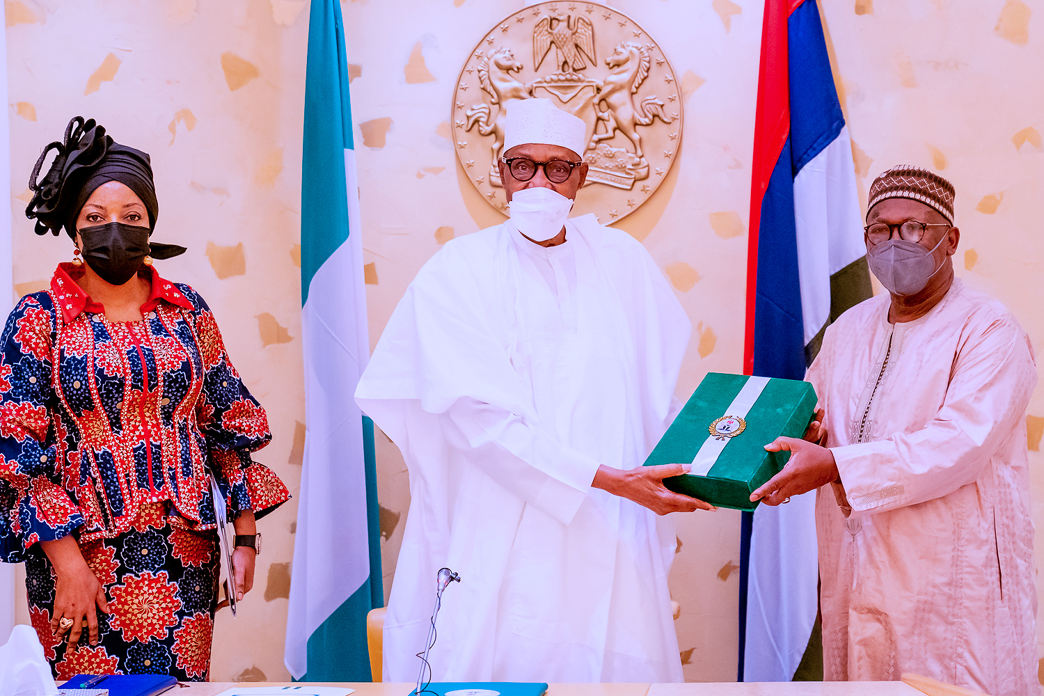 President Buhari received Report of the National Security Summit held on 26th May 2021 from Speaker Femi Gbajabiamila at the State House Abuja.