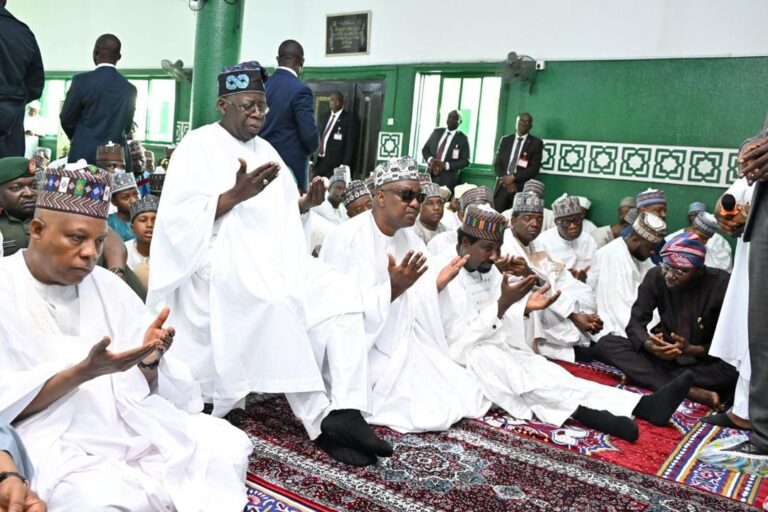 Prayer at Ansarudeeen Central Mosque, Abuja in memory of President Bola Ahmed Tinubu’s Mother, Alhaja Abibatu Mogaji, who died on 15 June 2013
