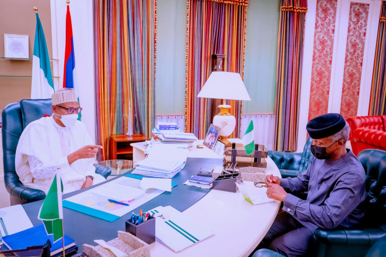 President Buhari receives Report on the Review of the Vertical Revenue Allocation Formula from Members of the Revenue Mobilization, Allocation and Fiscal Commission (RMAFC) at the State House, Abuja. President Buhari meets with new APC Chairman alongside Yobe State Governor Mai Mala Buni at the State House, Abuja. Vice President Osinbajo commissions the Muhammadu Indimi […]