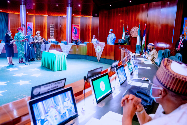 President Buhari presided over Federal Executive Council meeting and Swore-In 4 Newly appointed Permanent Secretaries at the State House, Abuja.
