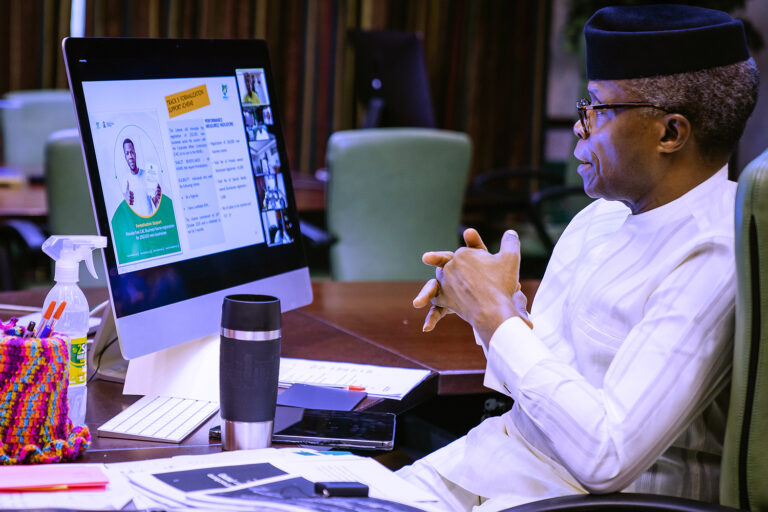 Vice President Yemi Osinbajo virtually delivered a keynote address at The Procter & Gamble BOI SME Academy Webinar at the State House, Abuja.