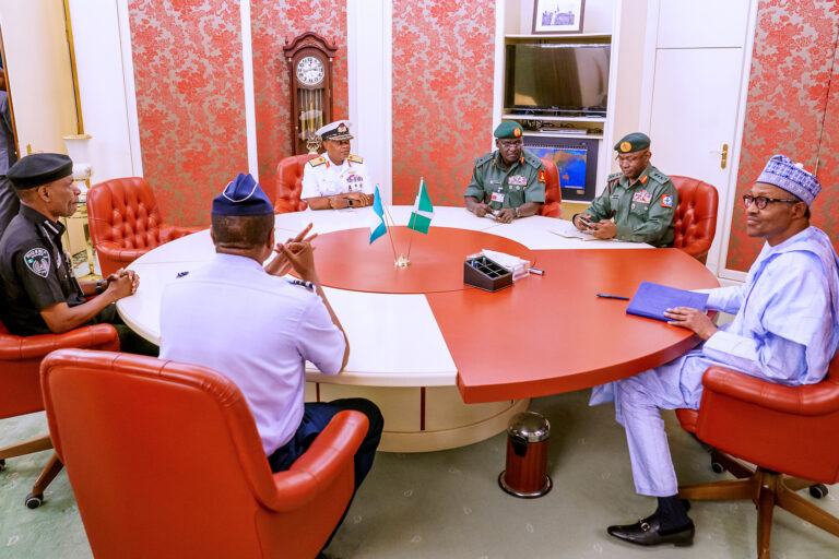 President Buhari meets with the Service Chiefs President Buhari met with the Service Chiefs and Inspector General of Police today at the State House,Abuja.