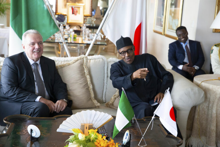 President Buhari Meets with Japan Bank for International Cooperation. President Muhammadu Buhari and his delegation held a bilateral meeting with the Japanese Prime Minister, H.E Shinzo Abe on the sidelines of the #TICAD7 today, in Yokohama, Japan.