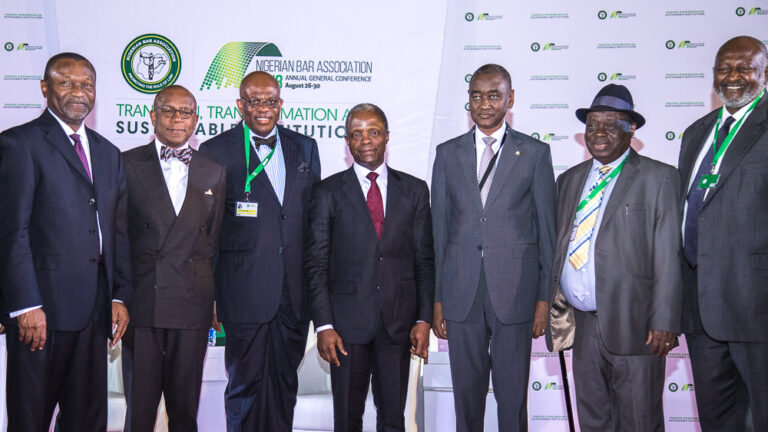 VP Osinbajo Attends 58th NBA Annual General Conference Vice President Yemi Osinbajo attended the 58th Annual General Conference of the Nigerian Bar Association (NBA). The theme was: “Transition, Transformation, & Sustainable Institutions” and it held at the International Conference Centre, Abuja.