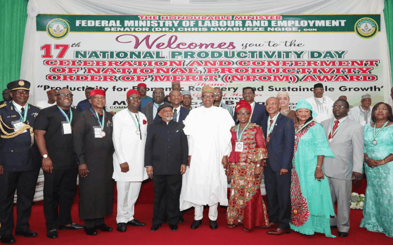 President Buhari Attends 17th National Productivity Award The President graced the 17th National Productivity Award ceremony at the NAF Conference in Abuja He was received by Senator Mao Ohunbunwa, Director General/CEO National Productivity Centre, Dr Kashim Akor, Minister of Defence, Brig General Mansur Dan Ali Rtd and Minister of Interior, Lt General Abdulrahman Dambazzau. He […]