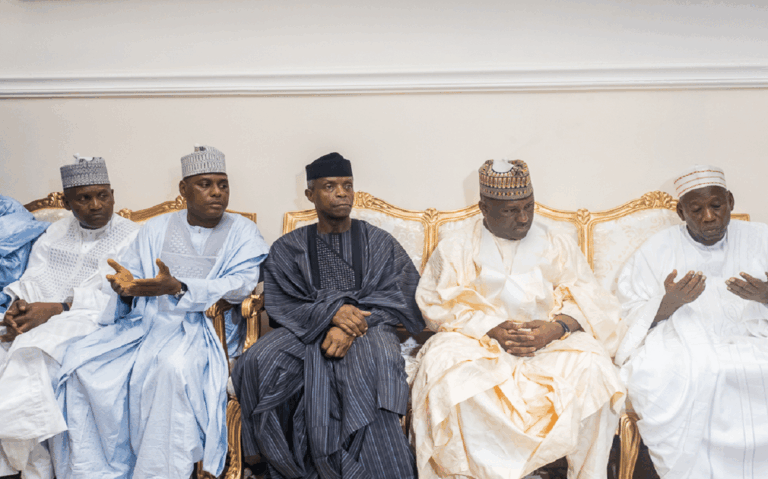 VP Osinbajo Visits Family of Sheikh Rabiu in Kano State The Vice President, Yemi Osinbajo, was in Kano State today, to commiserate with the family of late Sheikh Isyaku Rabiu. He was received by his son AbdulSamadi as well as other family members.