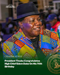PRESIDENT TINUBU CONGRATULATES HIGH CHIEF EDEM DUKE ON HIS 70TH BIRTHDAY