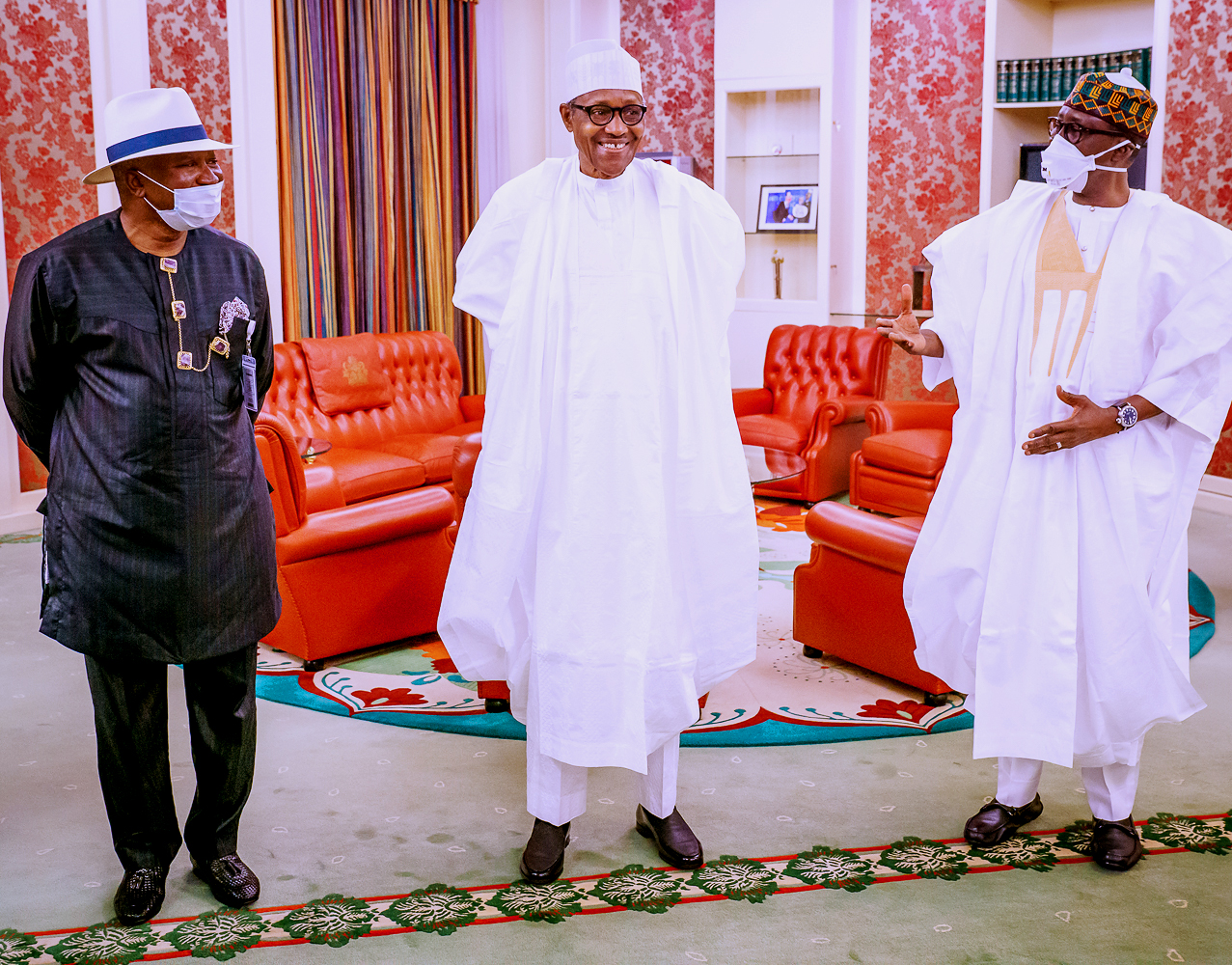 President Muhammadu Buhari received briefing from National Security Adviser, Maj. Gen. Babagana Monguno (Rtd) accompanied by Coordinator, Presidential Amnesty Programme, Col. Milland Dixon Dikio (Rtd) at the State House, Abuja.