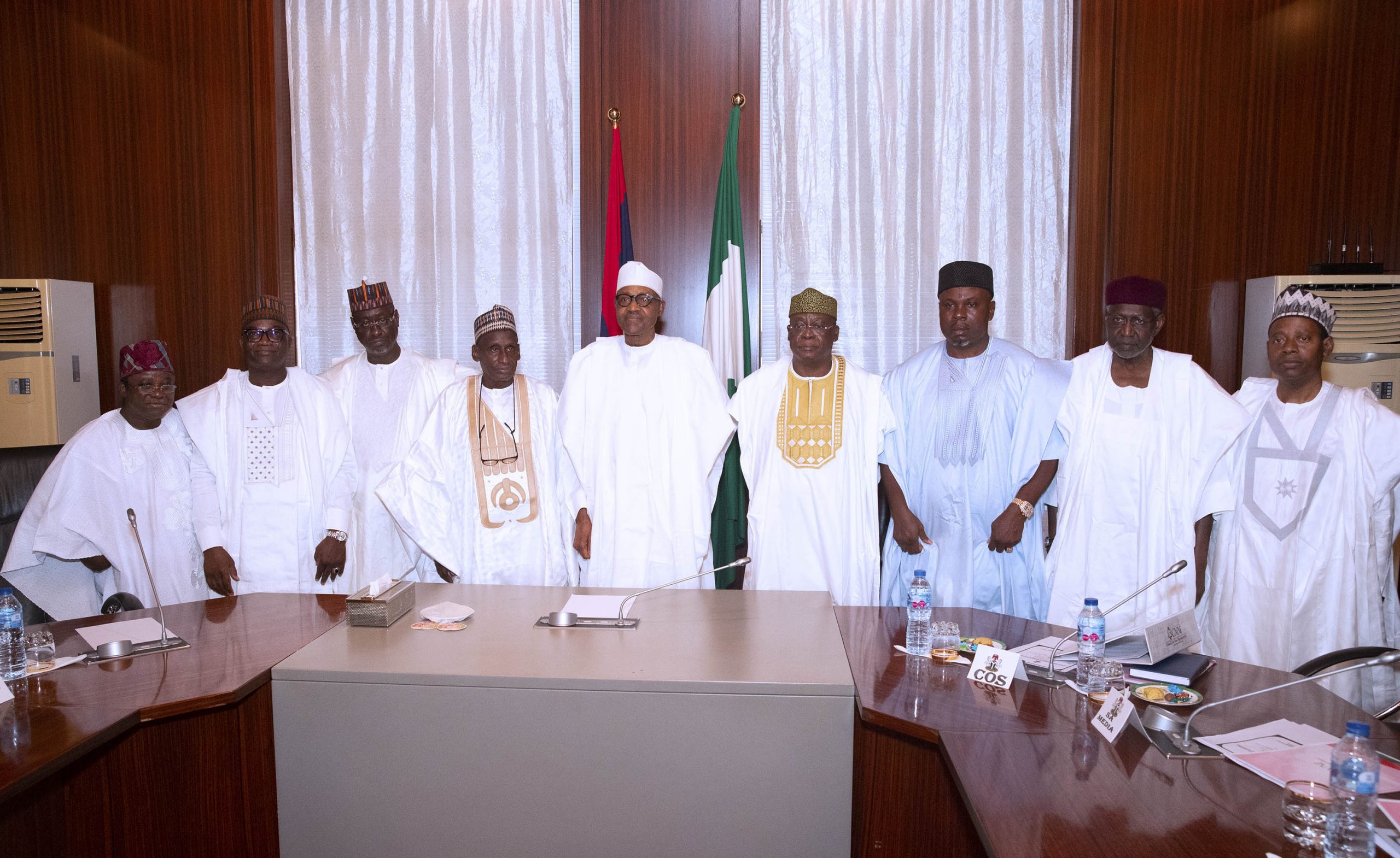 President Buhari received a delegation from the Council for New Nigeria Initiatives (CNNI) led by the Chairman, Senator Abu Ibrahim, at the State House, Abuja.