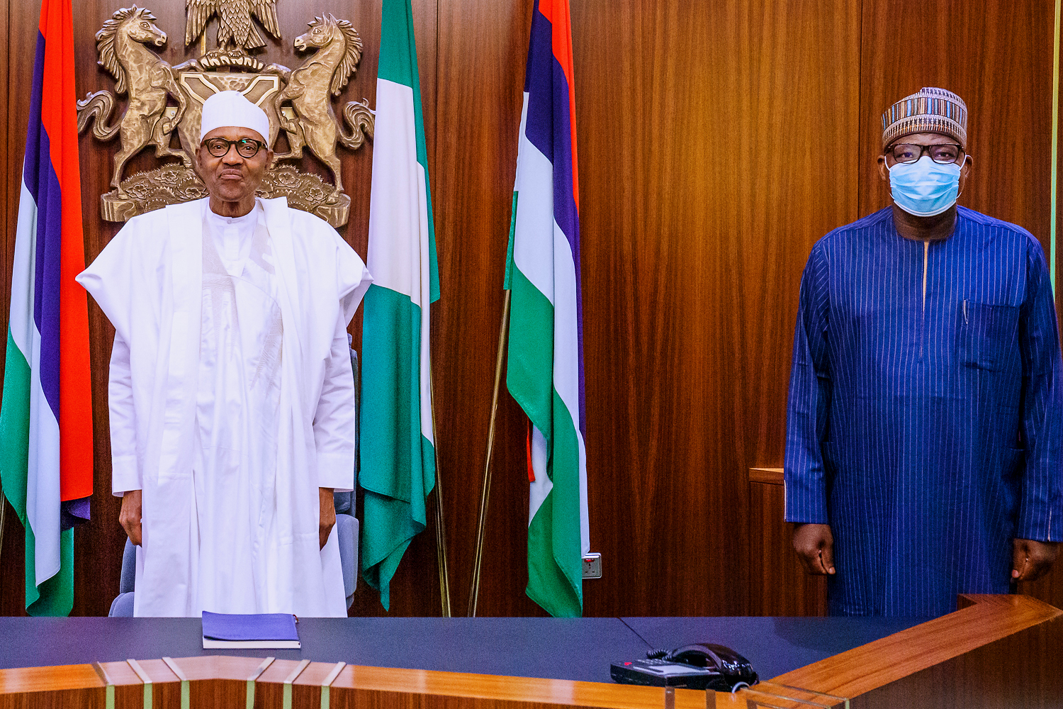 President Muhammadu Buhari received in audience the Governor of Yobe State, Mai Mala Buni accompanied by Former Speaker Yakubu Dogara, at the State House, Abuja.