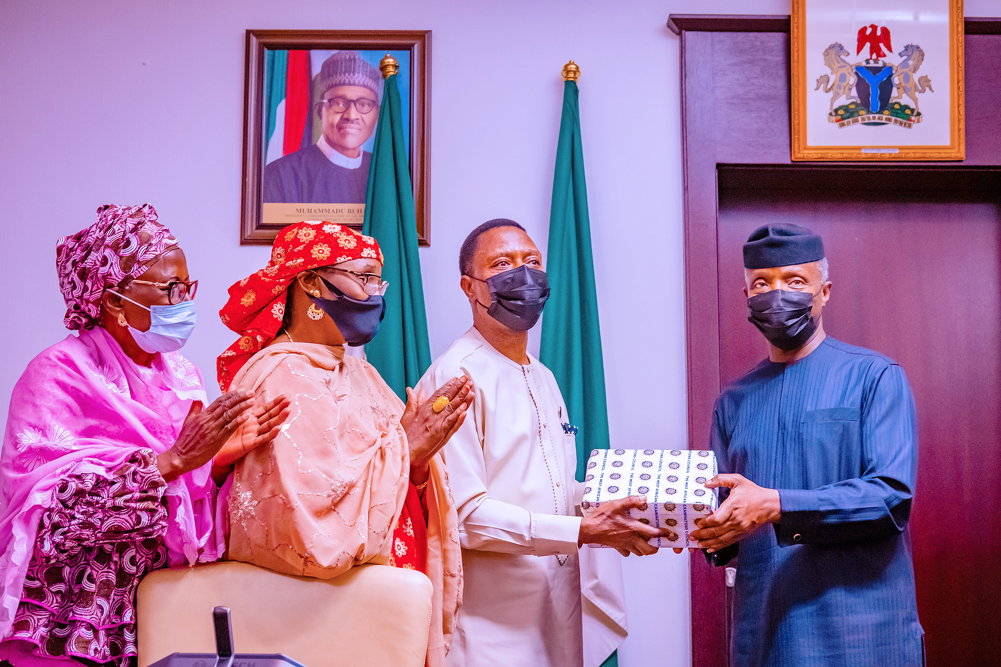 Vice President Yemi Osinbajo received in audience the leadership of the West African Examination Council Africa led by Hajiya Binta Abubakar (Chief Government Nominee) at the State House, Abuja.