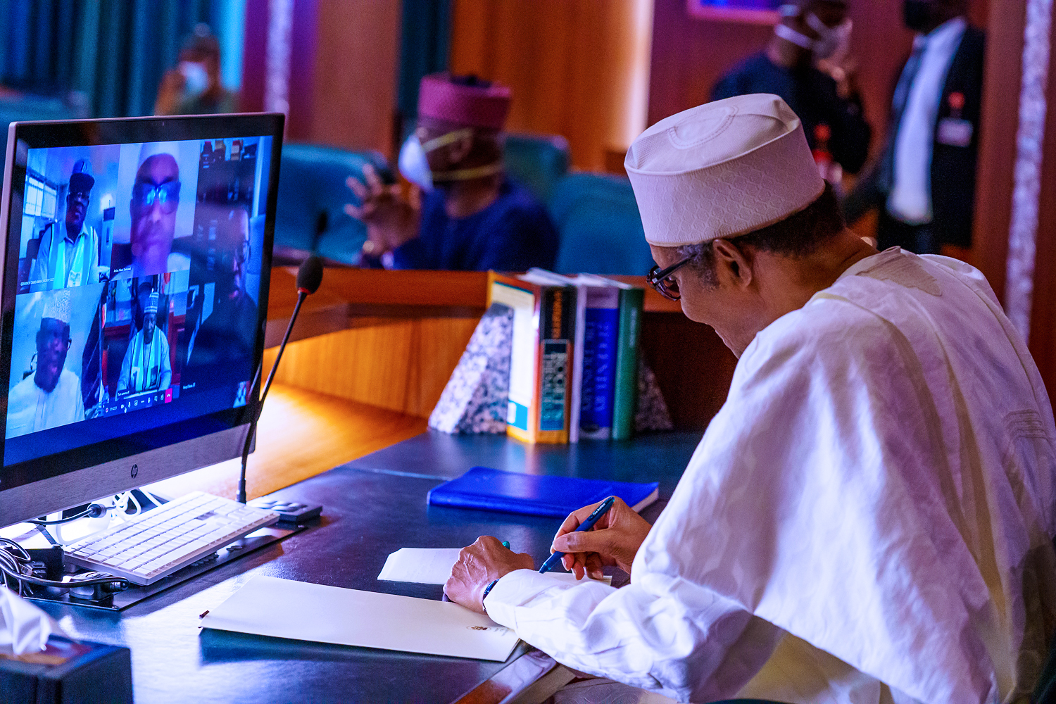 President Buhari helds Virtual meeting with some Governors led by Chairman Nigeria Governor’s Forum, Governor Kayode Fayemi at the State House, Abuja.