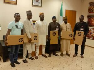 The winners, Wassa Isa Francis, Ubong John Akpan, Abdulrahman Iliya, Oluwasegun Samuel and Ahmed Musa, all won digital HP Laptop Computers personally handed out by Dr. Didi Esther Wilson-Jack in her office.