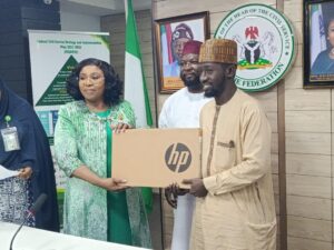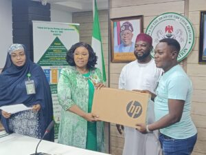 The winners, Wassa Isa Francis, Ubong John Akpan, Abdulrahman Iliya, Oluwasegun Samuel and Ahmed Musa, all won digital HP Laptop Computers personally handed out by Dr. Didi Esther Wilson-Jack in her office.