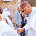 L-R: Justice Kumai Bayang Akaahs (rtd), Senate Leader Opeyemi Bamidele, Chief of Defence Staff, General Olufemi Oluyede, Mrs Lillian Oghogho Musa, President Bola Tinubu, Minister of Defence Gen Christopher Musa (rtd), Senate President Godswill Akpabio, National Security Adviser, Mallam Nuhu Ribadu and Bishop of the Catholic Diocese of Sokoto, Matthew Hassan Kukah at the State House, Abuja. Thursday, December 4, 2025