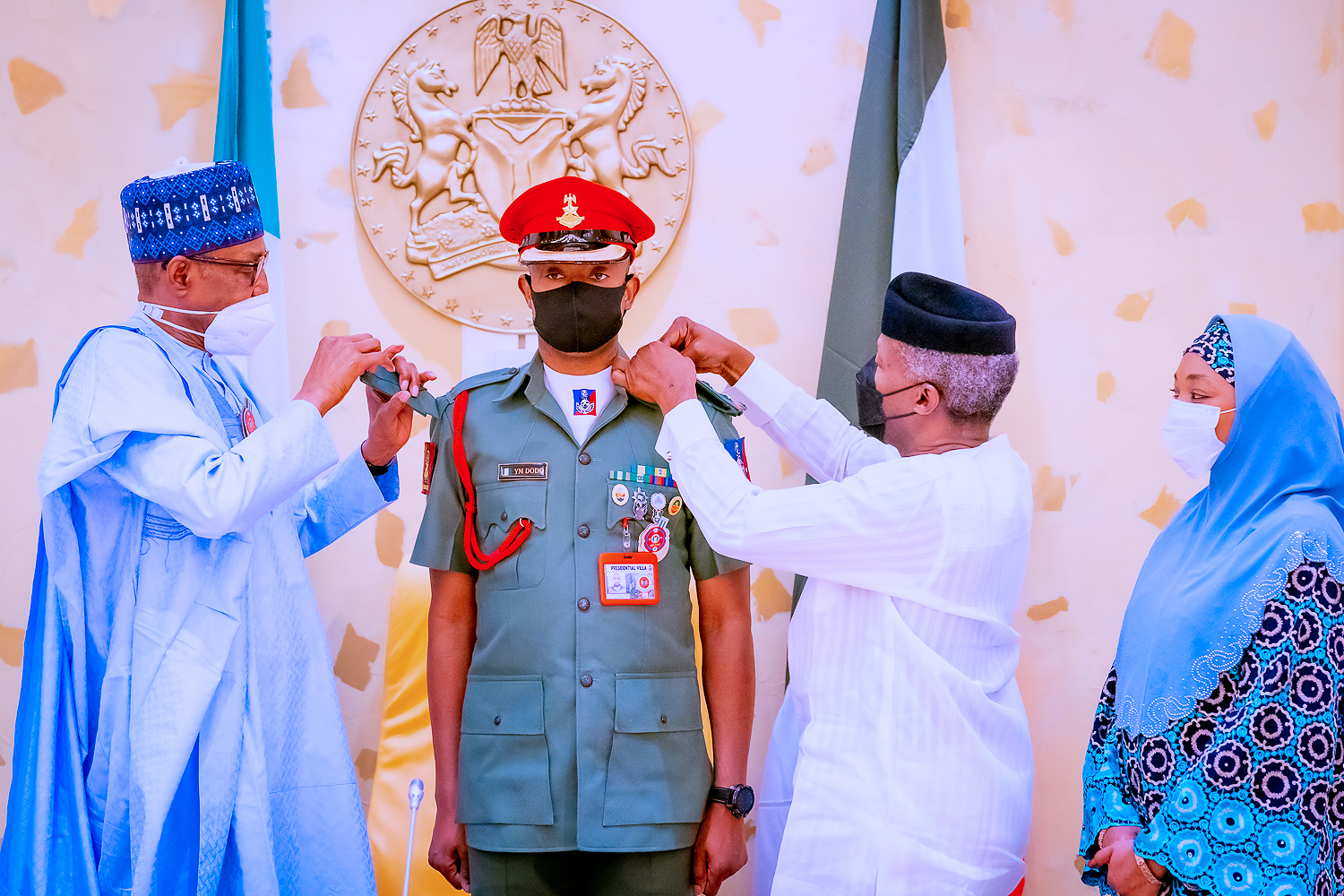 President Buhari presides over Security Council Meeting and Decorates his ADC to the rank of Colonel at the State House, Abuja.