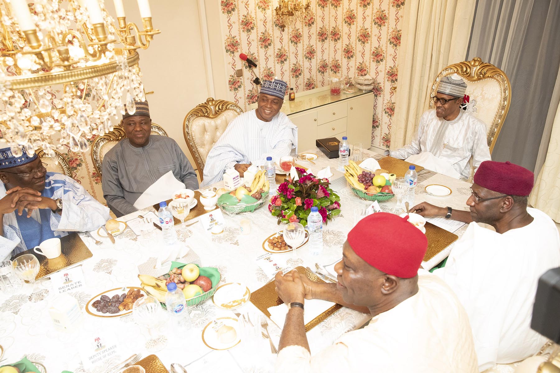 President Muhammadu Buhari broke his Ramadan Fast with Leadership of National Assembly at the State House, Abuja.
