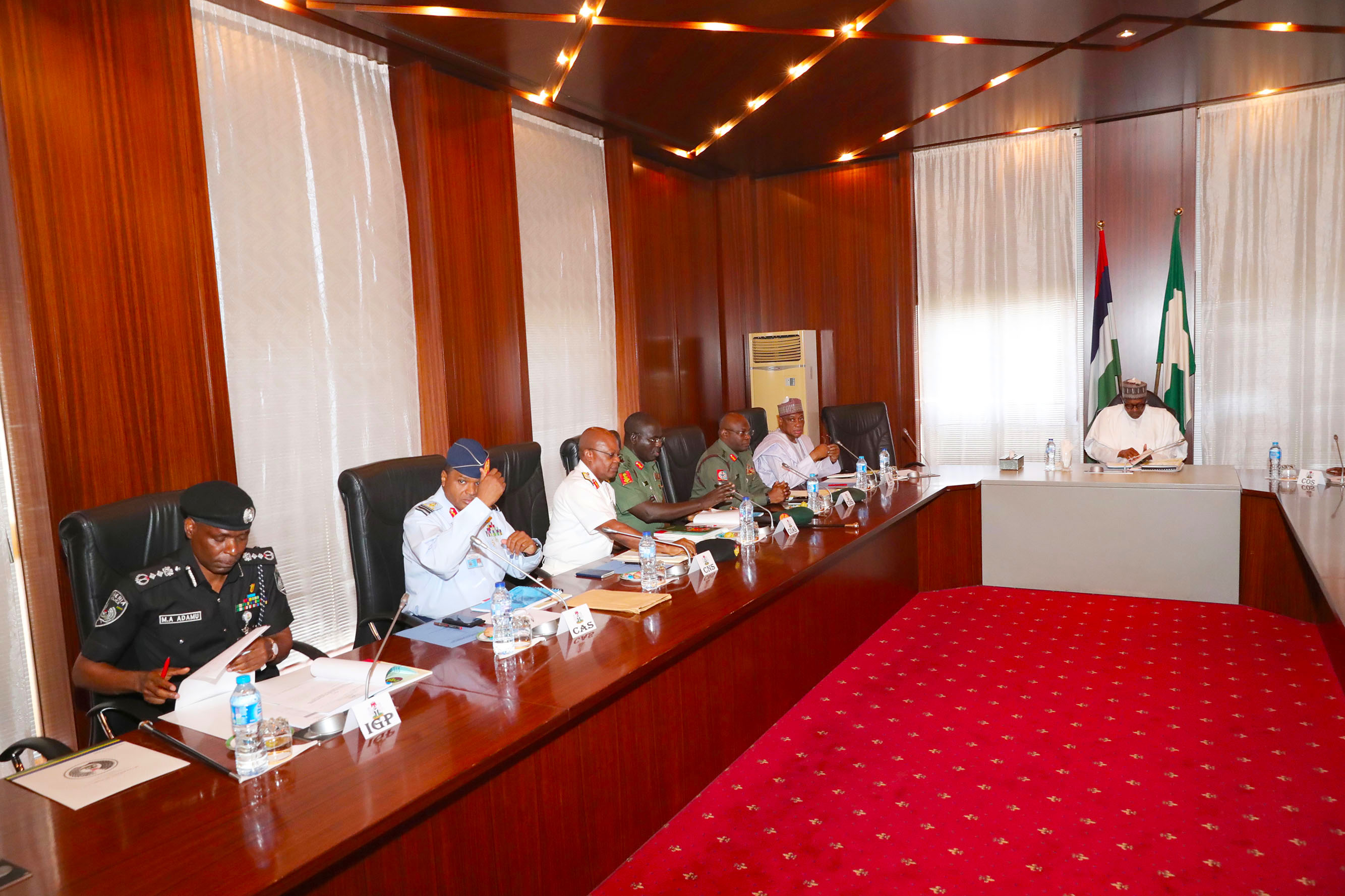 President Muhammadu Buhari received security briefing by Security Chiefs, at the State House, Abuja.