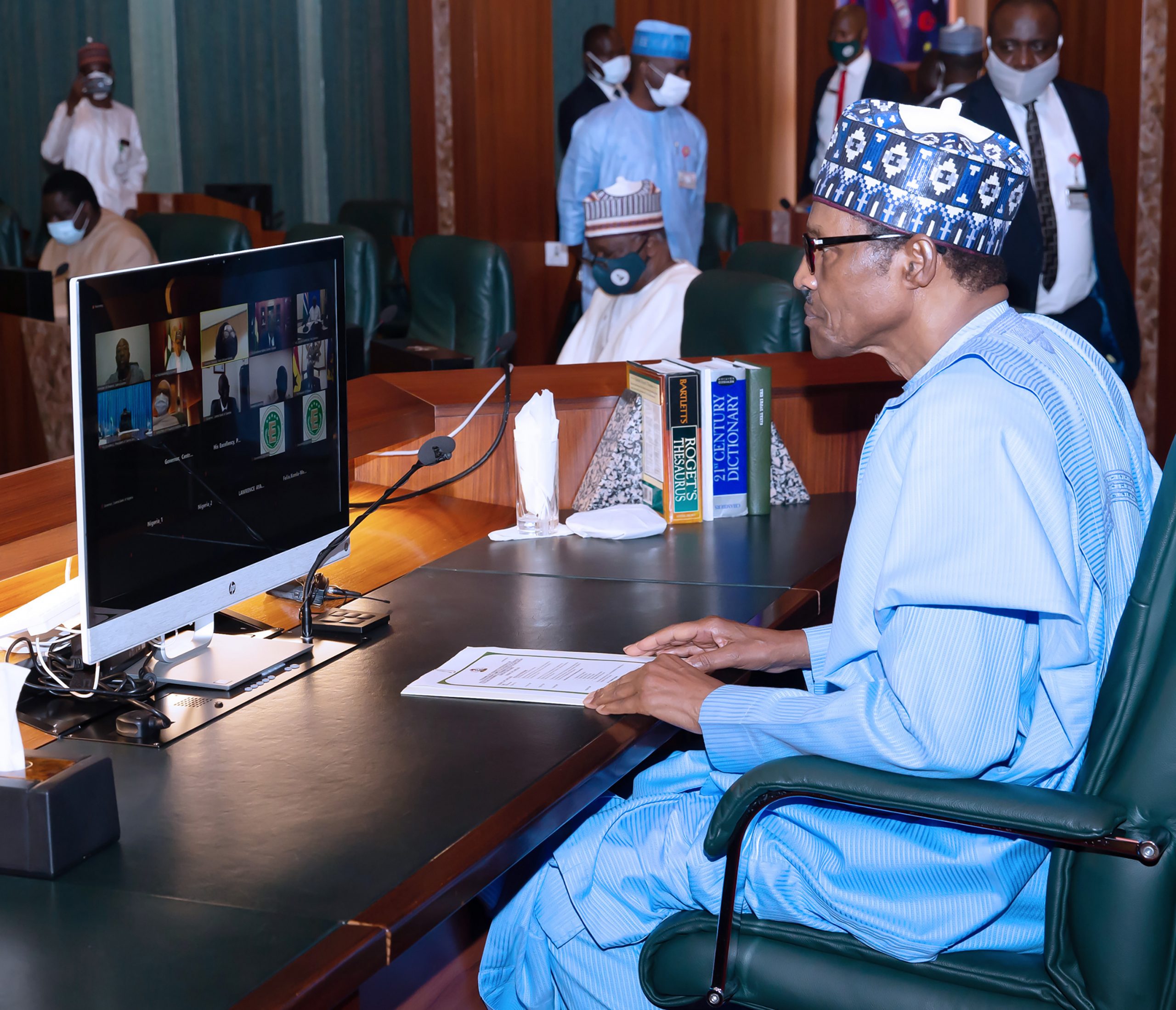 President Muhammadu Buhari participated in an Extra-Ordinary Virtual Summit of the Authority of Heads of State and Government of the Member States of the West African Monetary Zone hosted by West African Monetary Institute Accra Ghana.