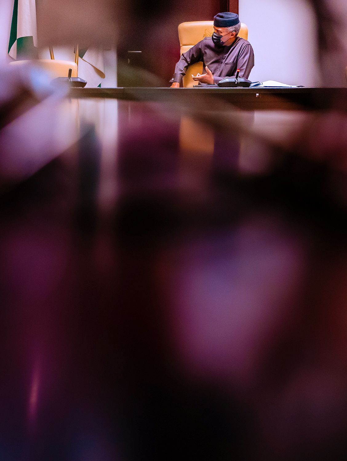Vice President Osinbajo receives in audience the management of the Nigerian Exchange Group led by their Chief Executive Officer Temi Popoola at the State House, Abuja.