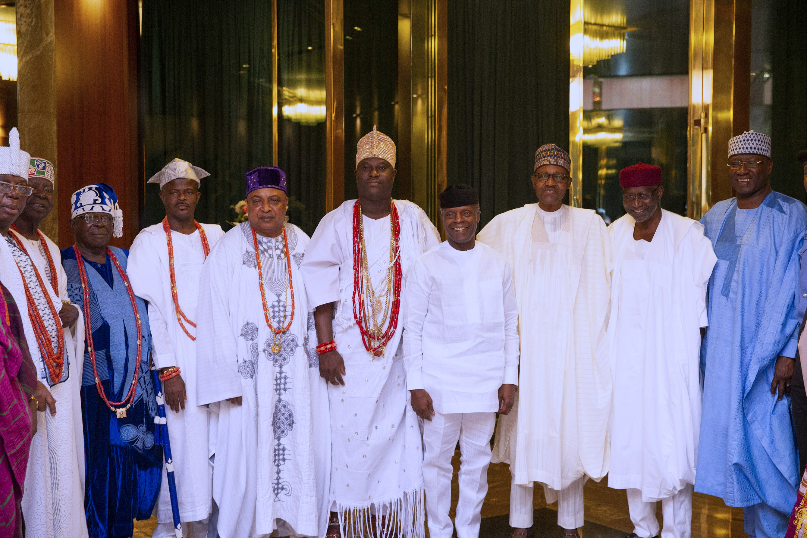 President Muhammadu Buhari met with Traditional Rulers from the South West to discuss Security in the region. The Meeting is a follow-up to Vice President Yemi Osinbajo’s ongoing engagements with the Royal Fathers in their various domains.